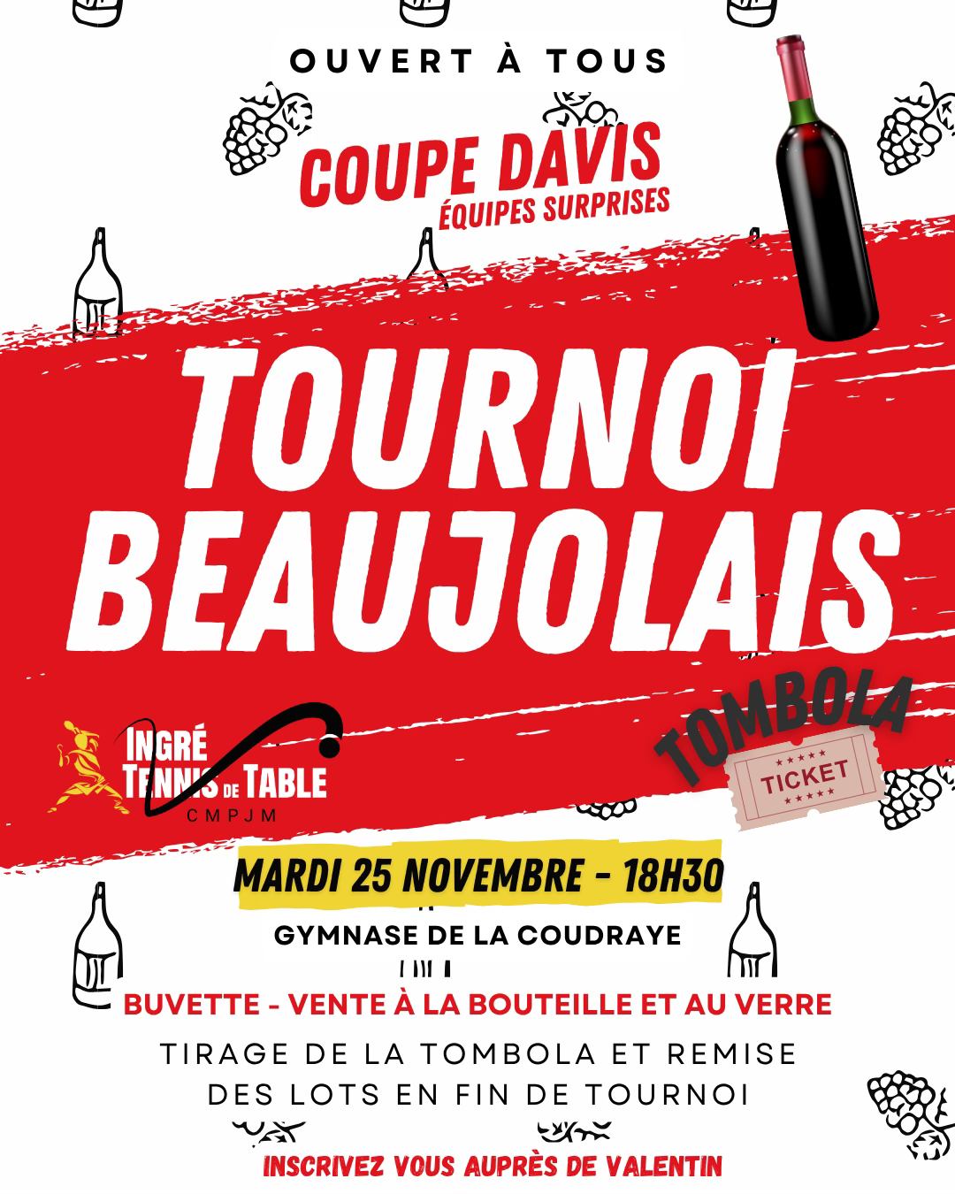 Ce mardi 25 novembre se déroulait le traditionnel tournoi du beaujolais à Ingré. A cet occasion, une buvette a été installée avec la possibilité de déguster du vin et pourquoi pas passer commande ! Le tournoi regroupant plus de 40