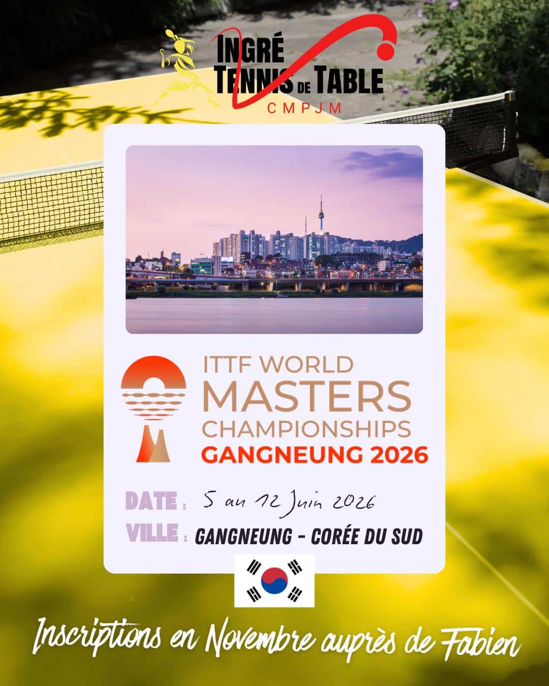 Les championnats du monde vétérans vont se dérouler en Corée, du Vendredi 5 Juin au vendredi 12 Juin 2026 à Gangneung Olympic Park.Une délégation du club va s’y rendre. Compétition réservée aux joueurs et joueuses de plus de 40 ans.Si
