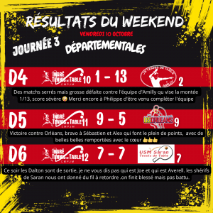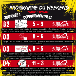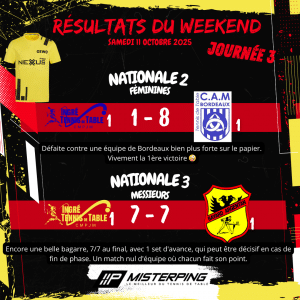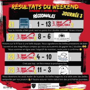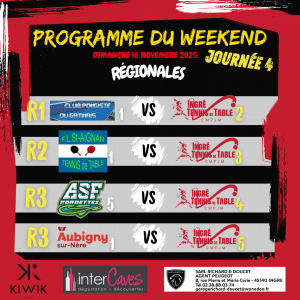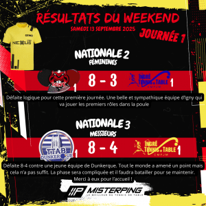 Après une belle première phase l’équipe 1 a finie première de sa poule, elle retrouve donc la Nationale 3 pour la deuxième phase :