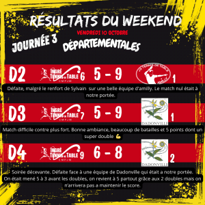 Concernant les équipes départementales du championnat par équipe, pour cette deuxième phase, nous seront présent dans presque toutes les divisions avec 7 équipes engages :